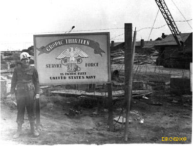 - Don with Shore Patrol gear at GROPAC 13 sign,