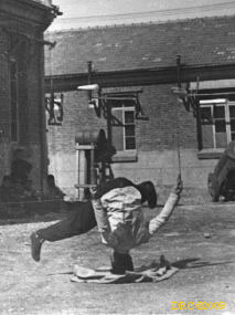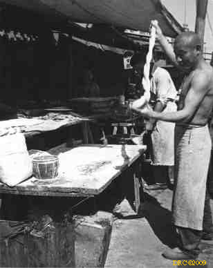 and Ricksha, inside our compound; a knife sharpener;