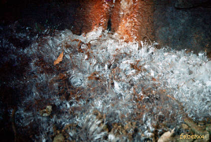 hoar frost growing from floor of rockshelter