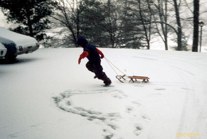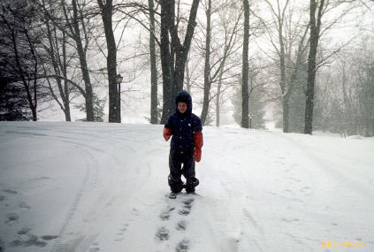 hiking through the snow, same trail, Dusty had