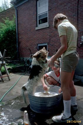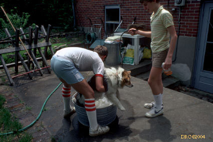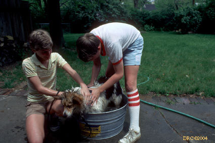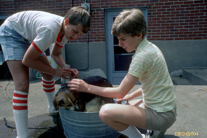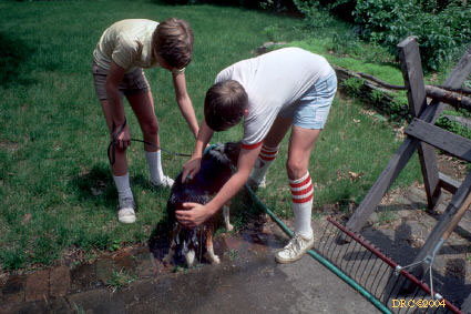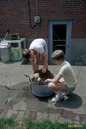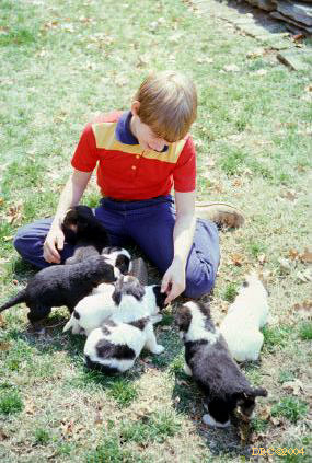 Donald with puppies, Barberry Lane, Lexington