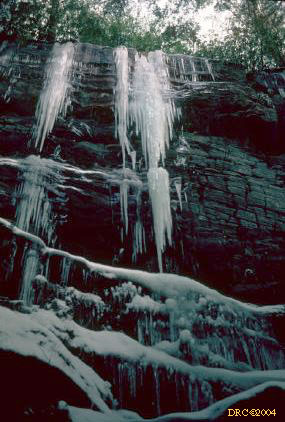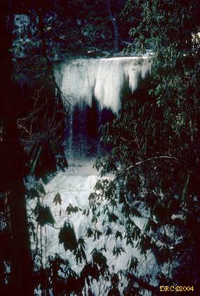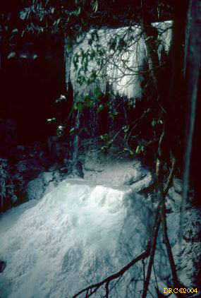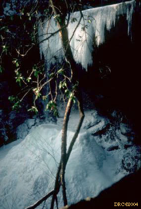 large, frozen waterfall, trail north of Cane Creek