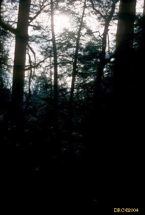 looking up through the hemlocks, dark picture
