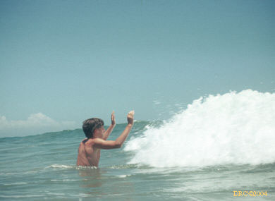 Donald playing in waves