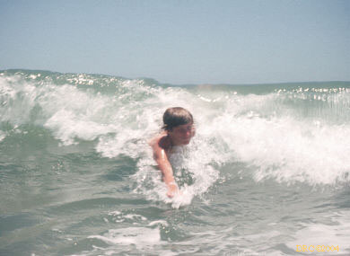 playing in the waves, Garden City Beach, with my underwater camera