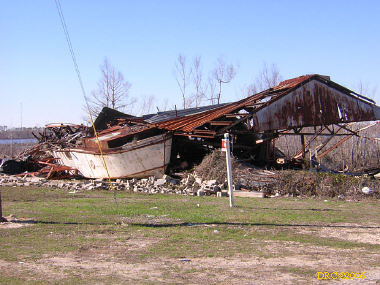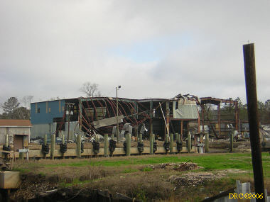 I went on to downtown Bayor La Batre and turned around near City Hall. I stopped by the drawbridge and took a picture of the destroyed warehouse on the channel.
