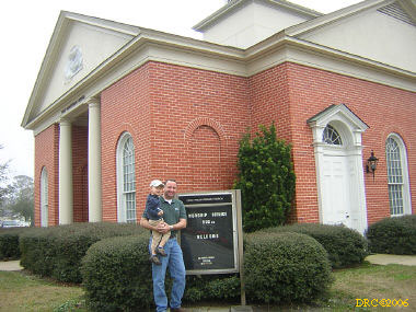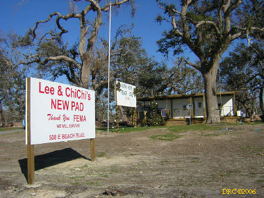 Next, I drove to Pascagoula, MS and went to the 1st Presbyterian Church of Pascagoula (228-762-2824, 1819 Pascagoula St., Pascagoula, MS 39567). I met Brad Lewis, the Youth Minister and his son Ben (about four years old). Brad is also the volunteer coordinator (228-217-2825, brad@frstpres.org), but he thinks that someone else will take his place as coordinator soon. Brad had attended Asbury Seminary in Wilmore, Kentucky and loved the area. He would like to move back some day. Anyway, their church is being repaired from wind and storm surge damage. The church is fairly new and large. The congregation is well-to-do. The church can house about 15 people comfortably. They have 8 classroom-sized rooms (carpeted) that can be used for dormitories. They do not have cots or air mattresses, so volunteers would have to bring their own as well as linens or sleeping bags. They do have showers and a washer and dryer. They have a large kitchen which is being renovated, but should be ready soon. There are a few casseroles in the freezer, but volunteers would need to buy most of their own food at the grocery stores (there were plenty of stores). If people want to stay there, the coordinators would want to assign work tasks for volunteers. Most of the work would be for members of the congregation, but if that was completed, then there was a second coordinator in the area where one could work for non-members and low-income families. I took pictures of Brad and Ben and the facilities. There is a FEMA trailer city behind the church. It was an abandoned Grumman’s parking lot. FEMA asked if they could use it and Grumman said that if at least 25% of the trailers could be used for Grumman personnel, then FEMA could use it.