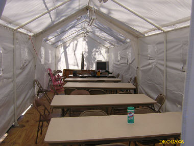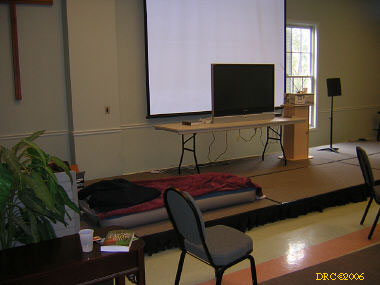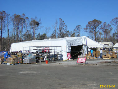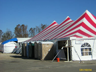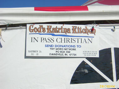 I didn't know if the Presbyterian Church had been completely destroyed or not; it was only two houses away from the Beach Road that had been washed away. I thought that perhaps they had set up an alternate church elsewhere. But after driving down a few back roads, I saw a sign indicating that I had found the First Presbyterian Church of Bay St. Louis (228-467-3921, Richard Jones, pastor) at 114 Ulman Ave., Bay St. Louis, MS 39520. I went in and found Sheldon Letellier (228-671-1163), originally from Louisiana. He was the physical plant person at the church. The coordinator was out. He showed me around and I took pictures of the facilities. They installed four showers along with an 80-gallon hot-water heater. They had a dinette tent, a kitchen with lots of food. a laundry and several rooms with recently-made bunk beds. I saw plenty of air mattresses too. They have had 50 to 60 people at a time (actually more than one hundred at one time!).