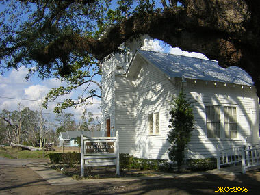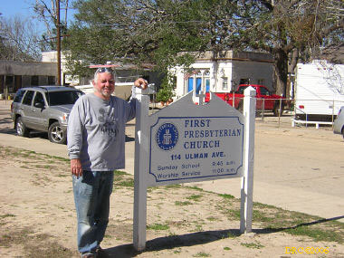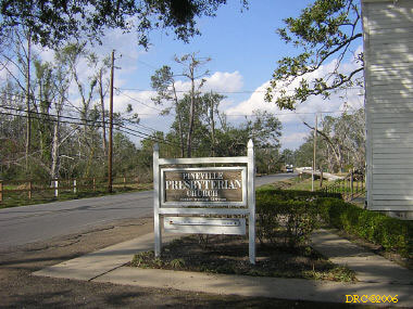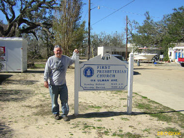 I got up about 6:30 and had breakfast. The temperature in Mobile was 35 degrees and it was 34 in Pascagoula. The skies were clear and sunny. I was headed for Biloxi, MS by 7:30 on I-10. I took I-110 extension to the coast road, US 90. When I got to the coast road, I called George Bates on his cell line. George Bates (cell, 601-807-5863, office, 228-604-2424, home, 601-442-8956, gbates1002@aol.com, wife Linda Bates) is the main PDA coordinator for southern Mississippi. Their office is in the Handsboro Presbyterian Church, 1304 E. Pass Road, Gulfport, MS (between Gulfport and D'Iberville). Handsboro used to be its own community, but it got absorbed by Gulfport several decades ago. The Handsboro Church is the oldest in the area. The congregation began in 1877 and the church was built in 1891.