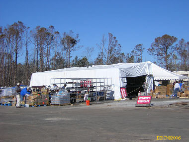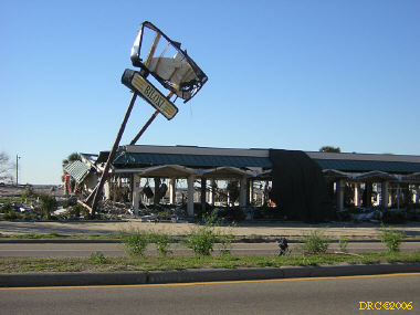 After talking to George, I drove west down the coastal road (US 90) as far as it would take me (Biloxi to Pass Christian). This was the same stretch of road that I drove down immediately after Hurricane Camille in 1969. I remember being right behind the bulldozer as it cleared the sand dunes out of the road in front of me. I must have been the first person to travel that section of road (well, except for the bulldozer man). Today, I took lots of pictures along the road; it was much the same as at Ocean Springs yesterday. At Pass Christian, I pulled into a relief center and took some pictures. They distribute food, clothing and other necessities here. I also took a picture of a washed out Wal-Mart store. One can see all the way through it to the other side. I had to turn around where the road was closed and headed back to I-10. Based on my memory, Camille was bad, but Katrina was far worse along this stretch of road.