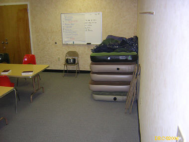 Sam Thompson (cell, 601-415-4577. 972-358-4200, e-mail, sam.thompson@nurunsports.com) was the volunteer coordinator but he was in Oregon or Washington for a visit. Sheldon turned me over to Richard Gabe (719-210-5720) when he came in. I talked a great deal with Richard. He said that they were close to being booked up through June. Most of the chainsaw work and mucking out had been done (at least there were fewer requests for that type of work). Most of the work requested now was sheet rock, float work, and roofing. They have on hand plenty of tools of all types and plenty of materials. They could also use electricians. If an electrician came into the state with a letter saying that they had a license, then they can easily get a license for temporary disaster work. Richard mentioned that they would like to get $20 dollars per person per week for room and board. They would also like to have a volunteer make breakfast. He had an excellent suggestion; he said that a group could request a clinic at Home Depot in sheet rocking, or roofing, etc. If Home Depot knew that a group wanted to do volunteer work, he felt certain that they would be willing to train people how to do it. That's worth investigating.