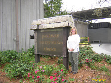 Cindy took me all around the church. It was nicely laid out and the landscaping was very attractive. I met Tom Oler when he came in. He was carrying a guitar and was a very nice fellow. We went to the outside where I took a couple of pictures of Cindy and the front of the church.
