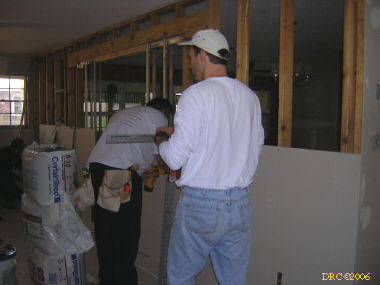 After clearing the debris from the side yard and hauling the rejected bricks to the front curb, I had pretty much finished all I could do on the side yard. My back was really starting to ache. I went into the house and was amazed by all the work that the Riverside men had accomplished with the sheet rocking. They asked me to run a router along one edge of a closet to trim the sheet rock. That only took a minute. My back was really hurting, it was 3:30 in the afternoon and I was covered in orange-brown silt from the side yard. I told the others that I would see them later, that I was finished for the day. I drove back to Grace Church, took a shower, changed clothes and felt much better afterwards.