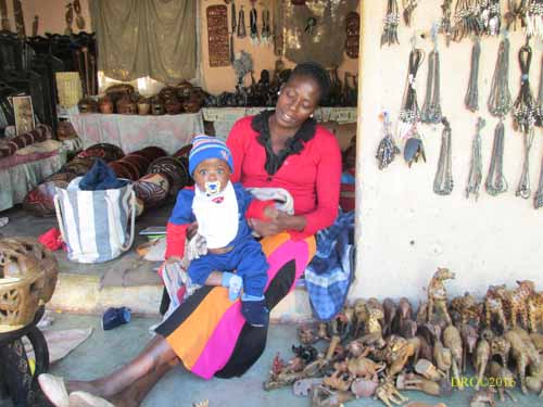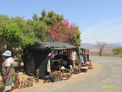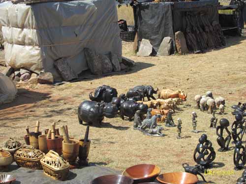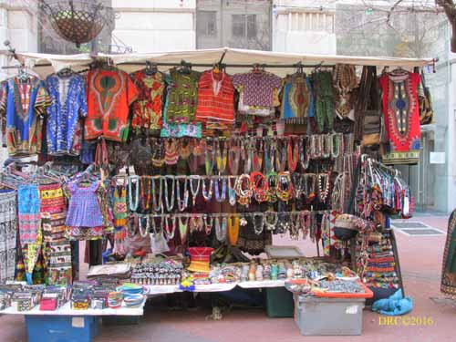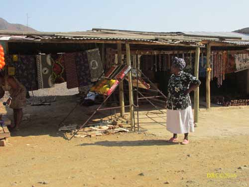 selling souvenirs, colorful African dresses, scarves, beads, masks,