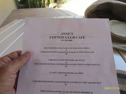 menu at Anne's Cotton Club Cafe,