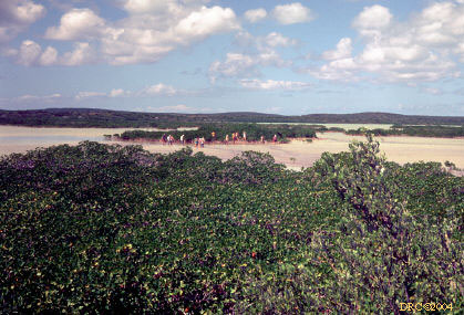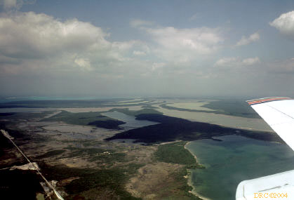 Lake, Flamingo Lake and Little Lake, plane over Cockburn Town
