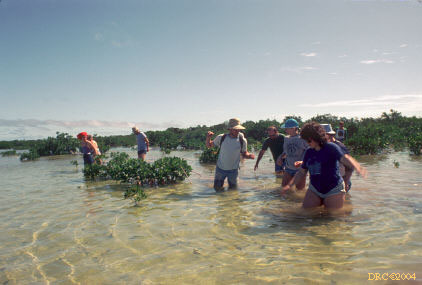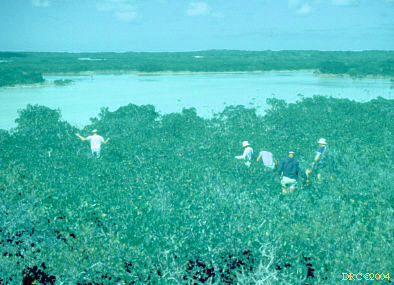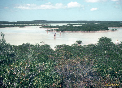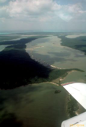 cutting through a subaqueous carbonate sand bar, Bahamas Platform