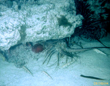 looks like a giant grasshopper sitting on the bottom, fairly deep water