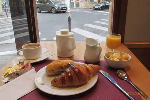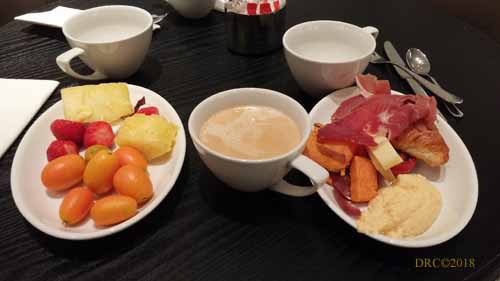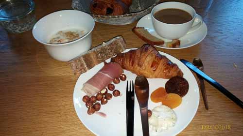 down to breakfast. Breakfast is included with my room. A cheerful lady