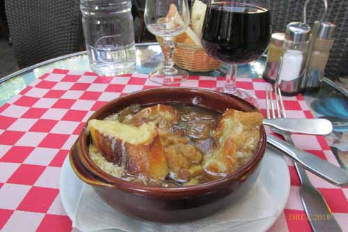 onion soup, and then Salad Nicoise, and a couple of glasses of red