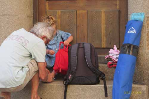 to the lobby and checked out by 7. Becky came down to see us off and I