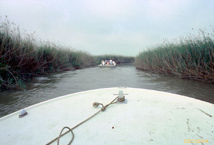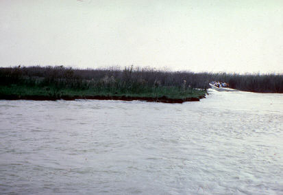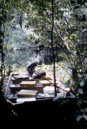 following the boat through the swamp