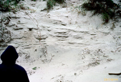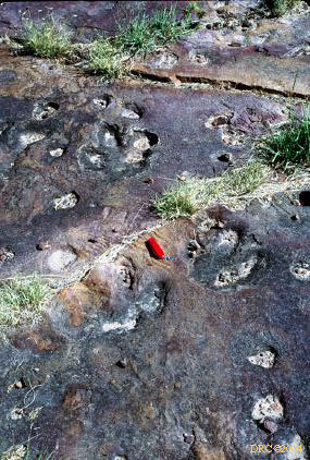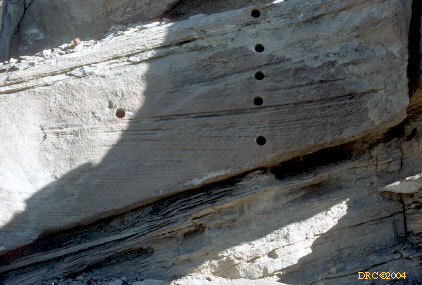 crossbedded sandstone, note core holes from sandstone