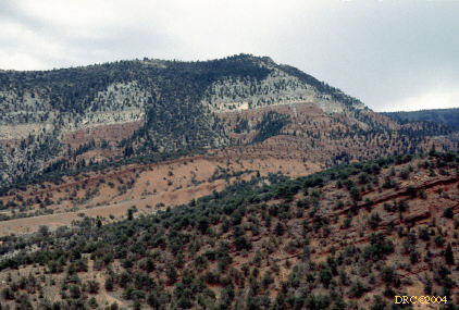 wall of canyon, thicker sandstone is Kf-2, underlying sandstone is Kf-1;