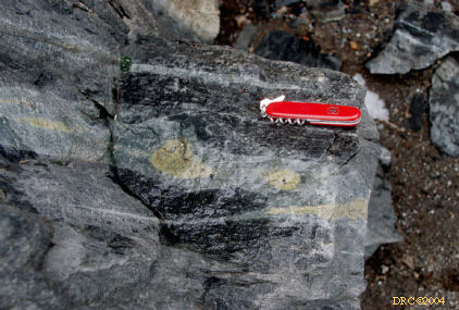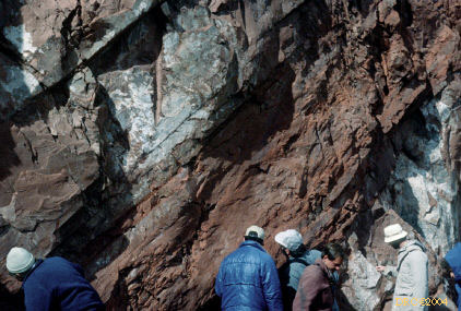 Stop 1-5, epidotized (green) rock
